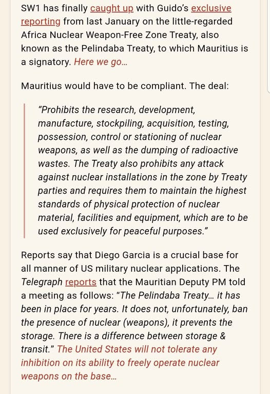 Alex Farqhuarson The Bruges Group So Starmer has been caught lying to our own military allies about the base on Chagos. He stated that there would be no restrictions placed on American use of the base - clearly that isn't the case, especially when nukes are concerned.